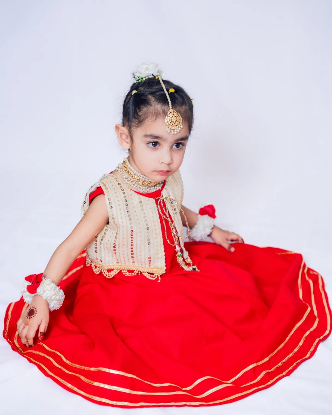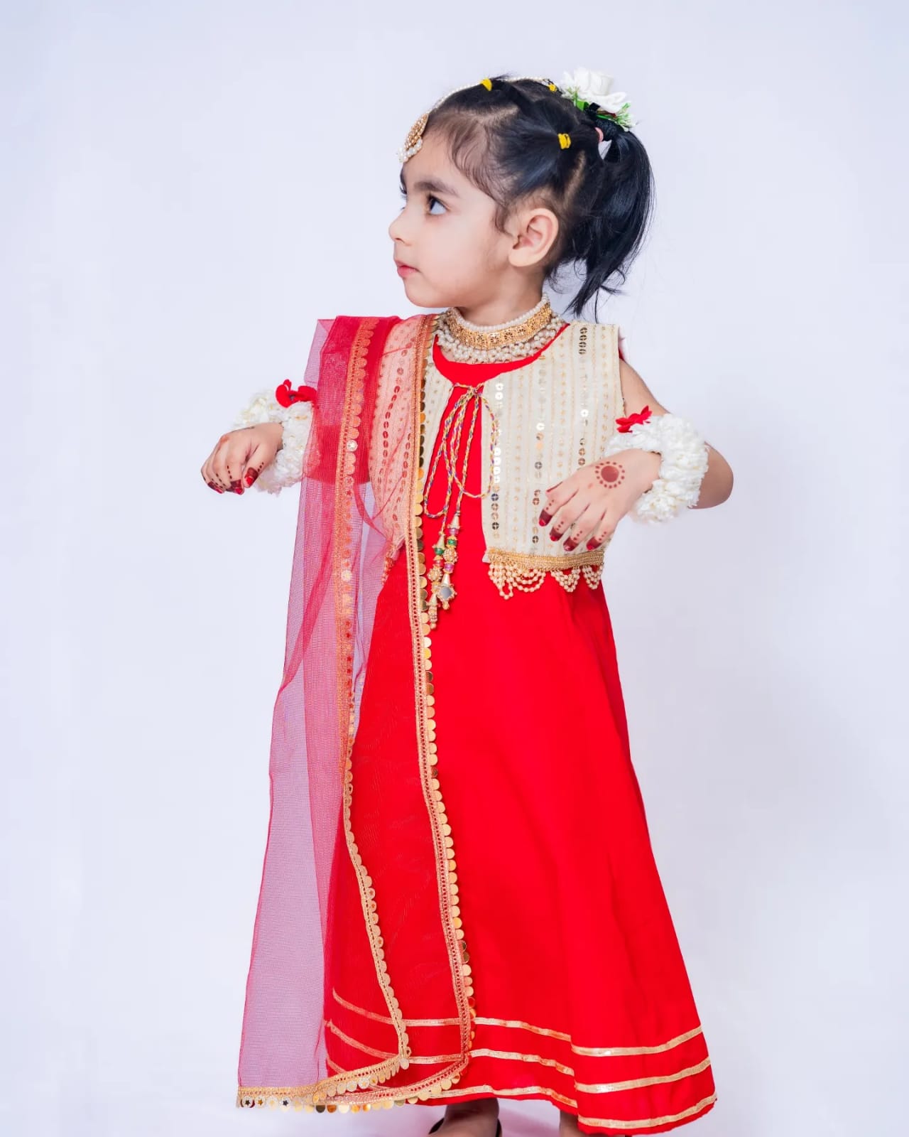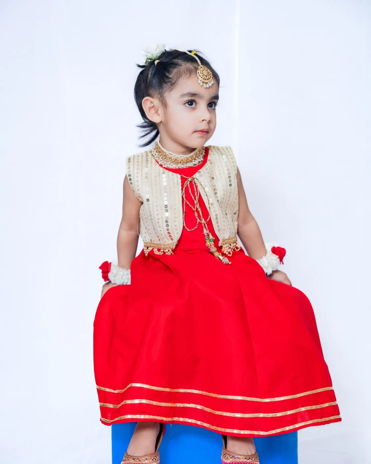 A charming traditional ensemble designed with intricate embellishments and vibrant colors, bringing timeless cultural beauty to your little one’s wardrobe.
